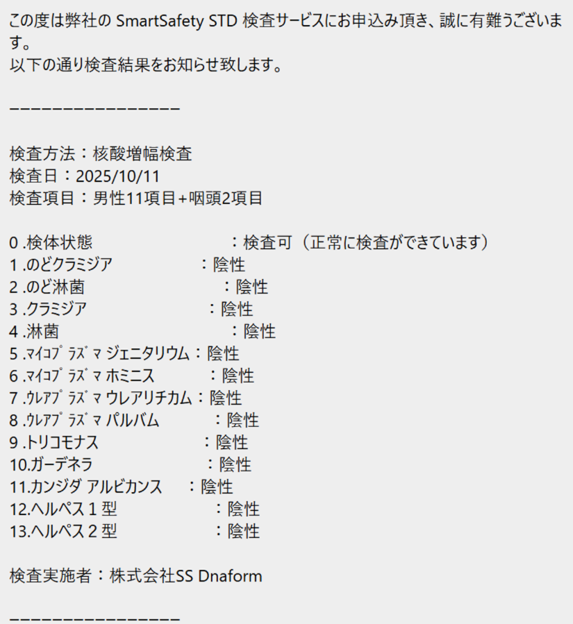 最新の結果(2025年10月前期実施)もすべて陰性を確認済みです。